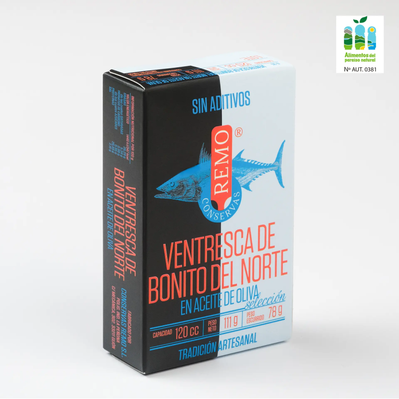 Nuestra Ventresca se selecciona de nuestras mejores piezas de bonito. Se cortan y se limpian cuidadosamente una a una y se envasan manualmente utilizando aceite de oliva refinado especial para conservas.