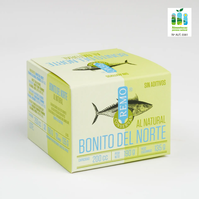 Esta referencia se envasa a máquina tras un proceso exhaustivo de limpieza de los lomos de bonito que se realiza de forma manual. Se conserva en agua y sal.