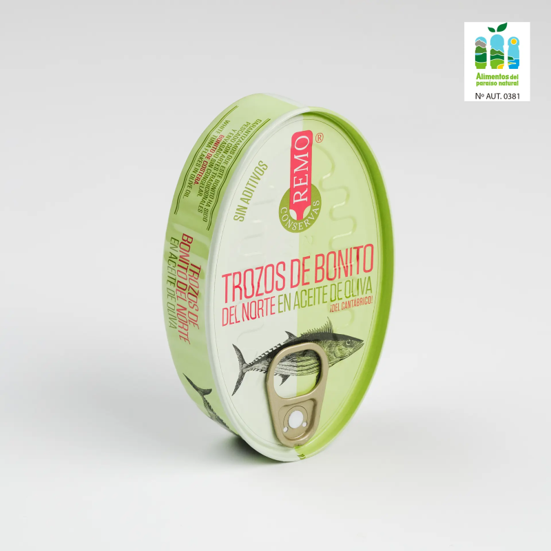Nuestros Trozos de Bonito se fabrican manualmente en un proceso que incluye la limpieza exhaustiva de los lomos, así como el troceado y envasado a mano de los mismos. Se utiliza aceite de oliva refinado especial para conservas.